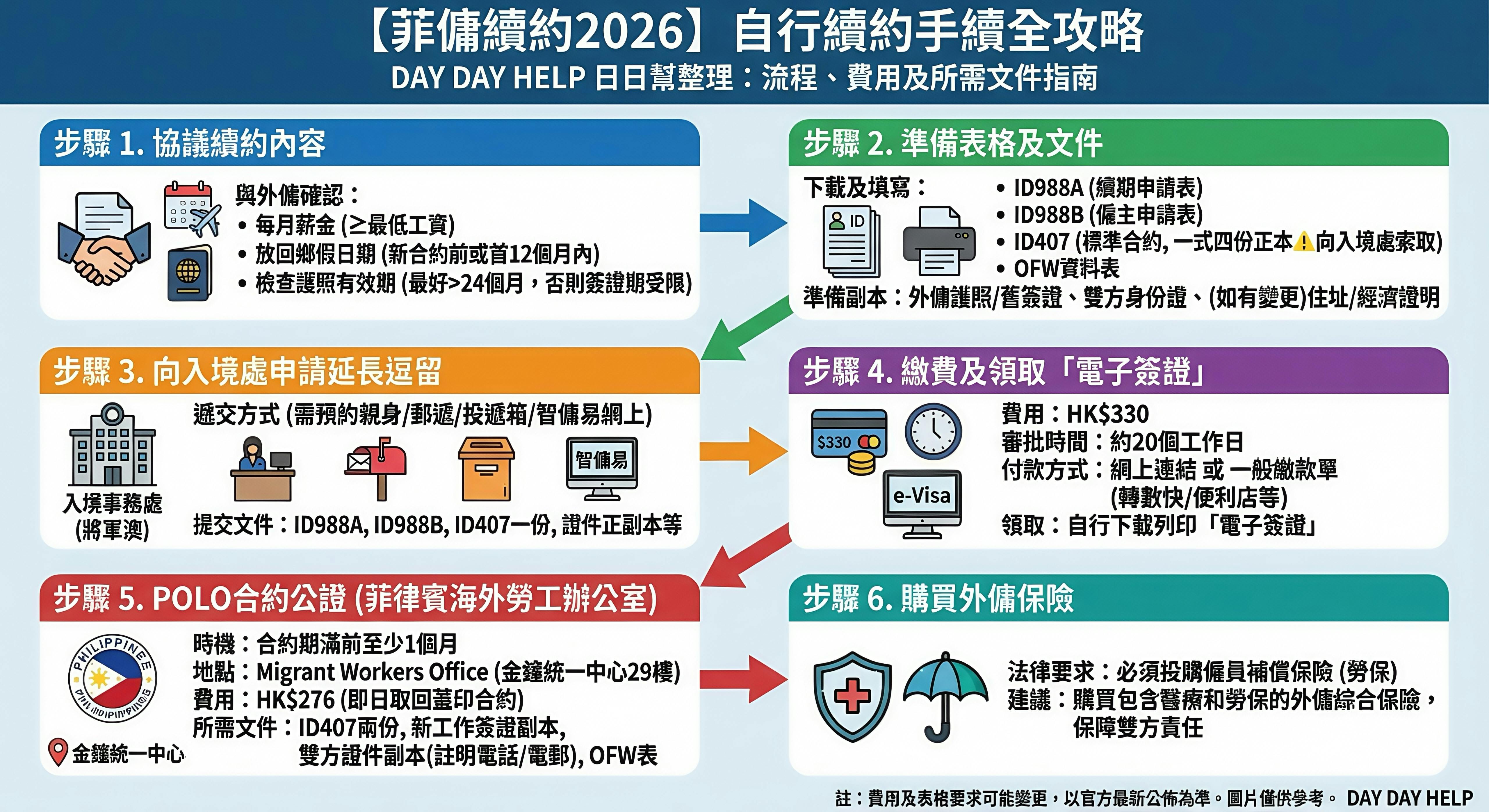 以下將為大家拆解「 自行為菲傭續約」續約步驟。