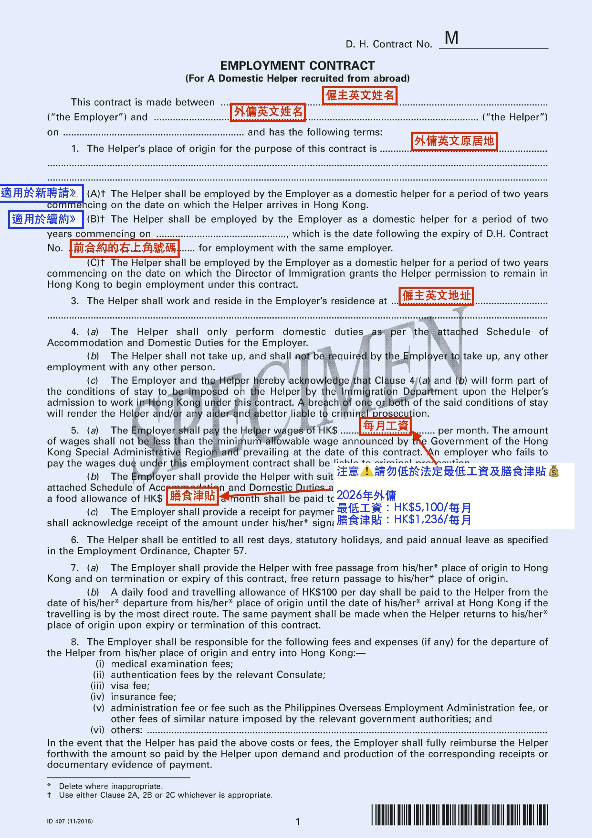 填寫 ID407(標準僱傭合約) 是聘請外籍家庭傭工最核心的步驟。這是一份由入境事務處規定的法定合約,填寫時必須極度準確,因為任何錯誤都可能導致外傭申請被退回或延誤。日日幫為你以圖解及整理的填寫 ID407(標準僱傭合約) 的注意事項,助你自助辦理更容易。